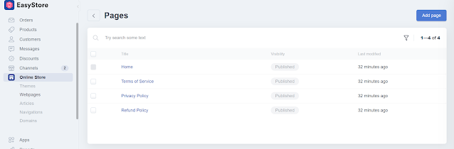 有些會一直用到或是用來公布一些事項時你就可以新增一個頁面, Easystore 也有提供一些頁面範本可以直接使用